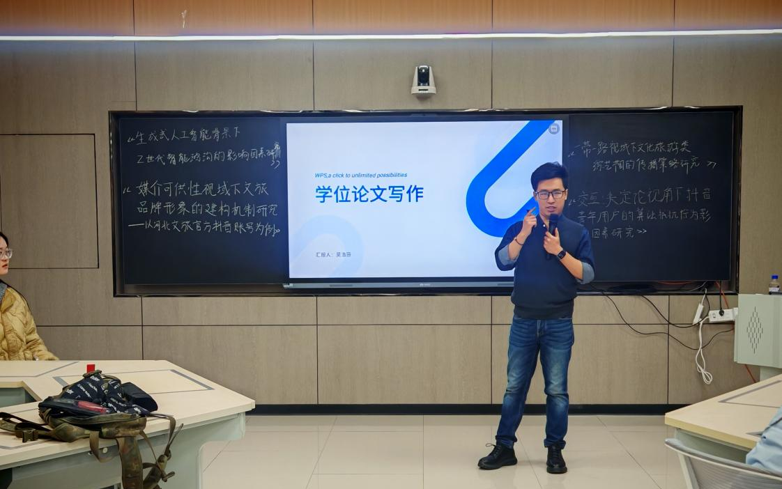 本网讯(通讯员:李垚娇、王曼燚、邓玉果)2025年10月20日晚,bat365正版唯一官网特邀东北师范大学吴浩辰博士在bat365官网信息楼209智慧教室举行了一场关于学位论文写作经验的分享报告会,同院杜新宁博士作为协同嘉宾,助力学生应对论文各环节难题,降低校外盲审、抽查等环节的风险,让学生顺利地完成论文与答辩。