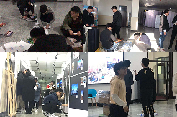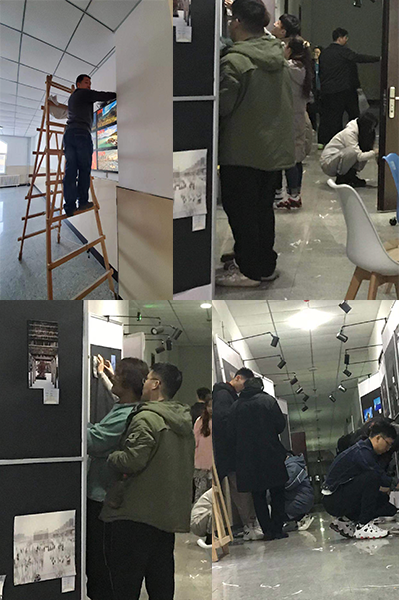 我们在现场可以看到bat365官网教师和学生忙碌的身影。教师带领学生共同参与劳动实践,用自己勤劳的双手布置“发现工大”摄影作品展的展厅。许许多多看不着的手工细腻活和劳力活,都是教师和学生们共同完成的。