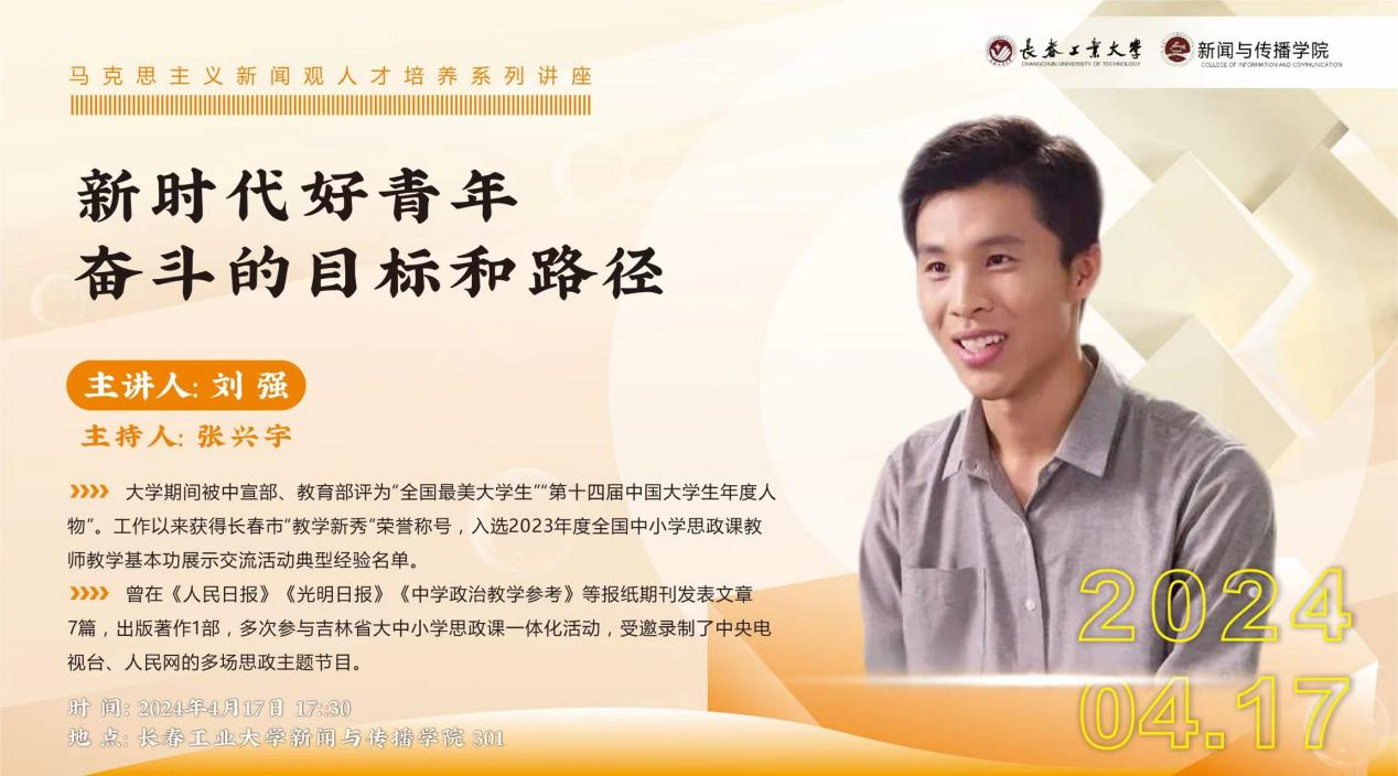 新闻网讯(通讯员 张兴宇)为进一步推进bat365官网马克思主义新闻观人才培养模式,加快马克思主义新闻观“本—研一体化”培养模式的进程,培养新时代新闻人的责任与担当。2024年4月17日下午17时30分,bat365正版唯一官网邀请到“全国最美大学生”、“第十四届中国大学生年度人物”、东北师范大学附属中学高中政治教师——刘强,开展了题为《新时代好青年奋斗的目标和路径》专题讲座。该讲座由bat365官网广播电视编导专业教师张兴宇主持,bat365官网2023级全体研究生、2021级全体本科生参加了此次讲座。