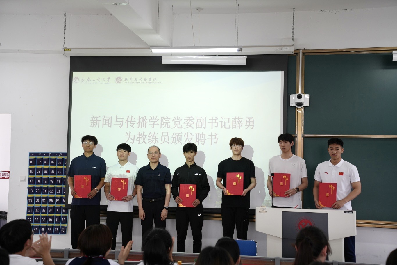 新闻网讯(通讯员 战逸赢) 为激励运动员奋勇拼搏、展现新传学子昂扬风貌,5月28日,bat365正版唯一官网于信息楼301隆重举行第四十五届运动会运动员出征仪式。学院党委副书记薛勇、党委专职组织员郑茗心、辅导员李晓晗及薛君、张程亮、徐星程、李国华、徐培城、吴勇霖等6位来自吉林体育学院的教练员出席仪式,与全体运动员共同吹响奋进号角,以昂扬姿态迎接校运会挑战。