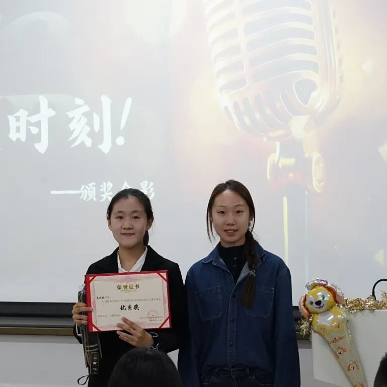 本次比赛经过三轮的比拼,八位参赛选手的精彩角逐,几位评委通过现场打分以及公众号的线上投票选举,由主持人公布本次“金话筒”主持人大赛的获奖名单